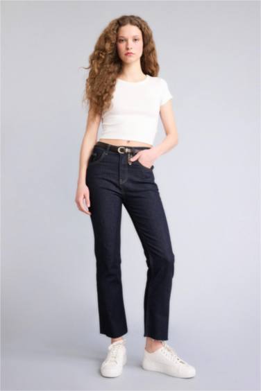 Crop Flare Fıt Yüksek Bel Jean Pantolon