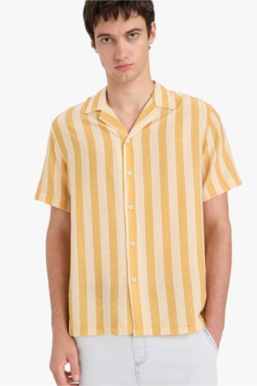 Regular Fıt Apaş Yaka Baskılı Çizgili Kısa Kollu Gömlek