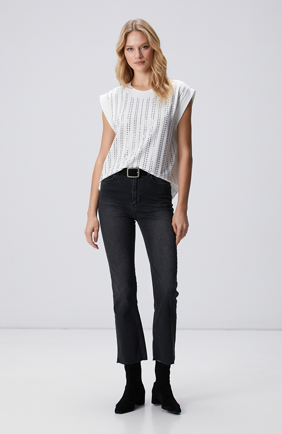Kırık Beyaz Taş Baskılı T-Shirt