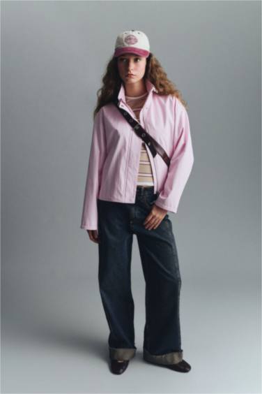 %100 Pamuk Barrel Fıt Yüksek Bel Jean Pantolon