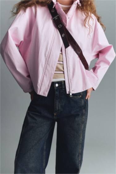 Düşük omuz gömlek, kemerli şalvar, sivri topuklu bot ve uzun trençkot — rahat ama keskin bir şehir tarzı.