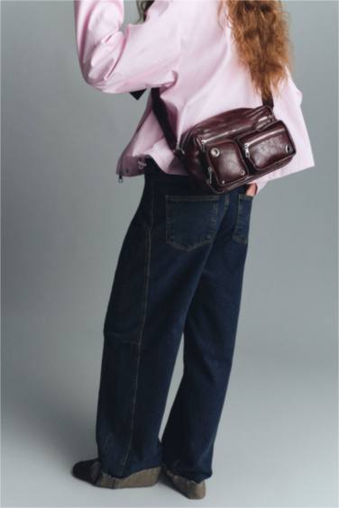 Brown-tonlu **Kumaş mix colorblock gömlek**, burgundy **Belden bağlamalı wide leg fit pantolon** ve brown **Suni deri babuç** ile dengeli, rahat ama etkili bir kombin.
