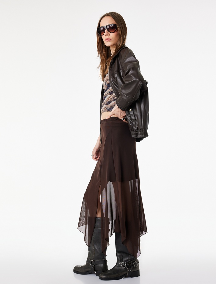 Asimetrik Kesim Yırtmaç Detaylı Tül Midi Etek