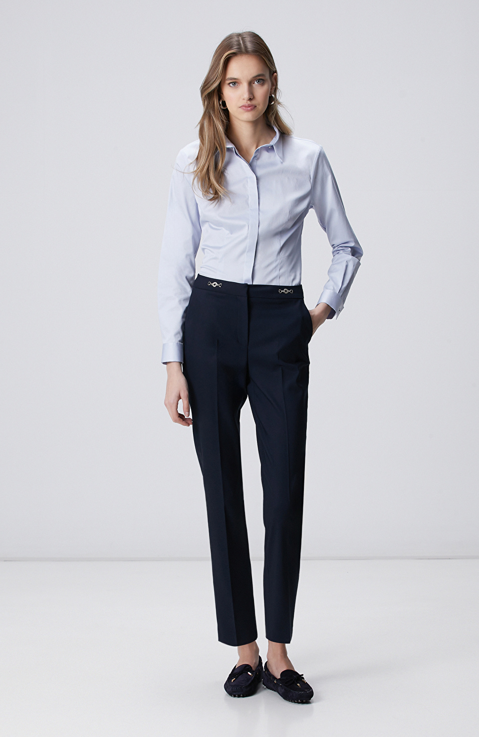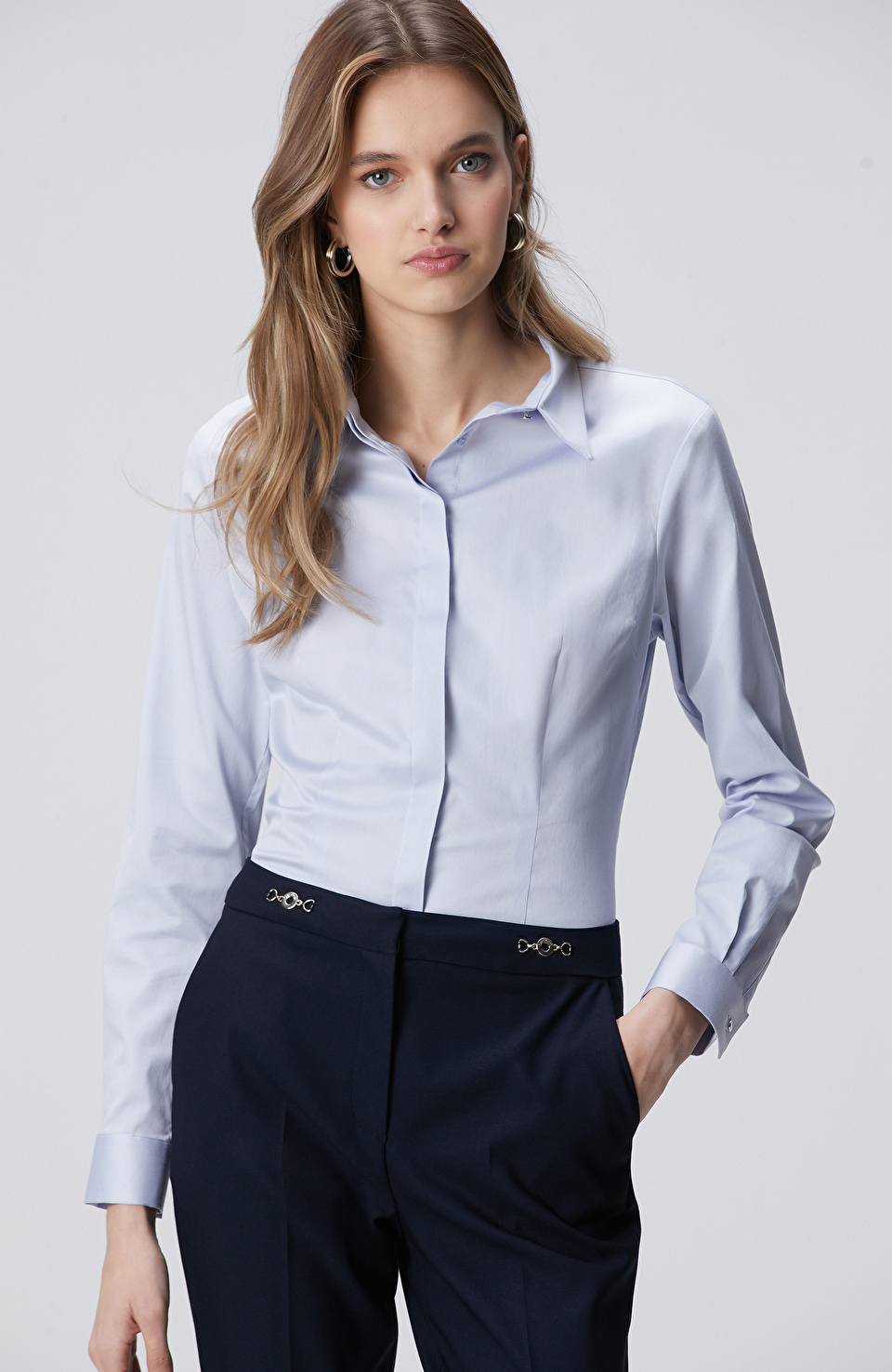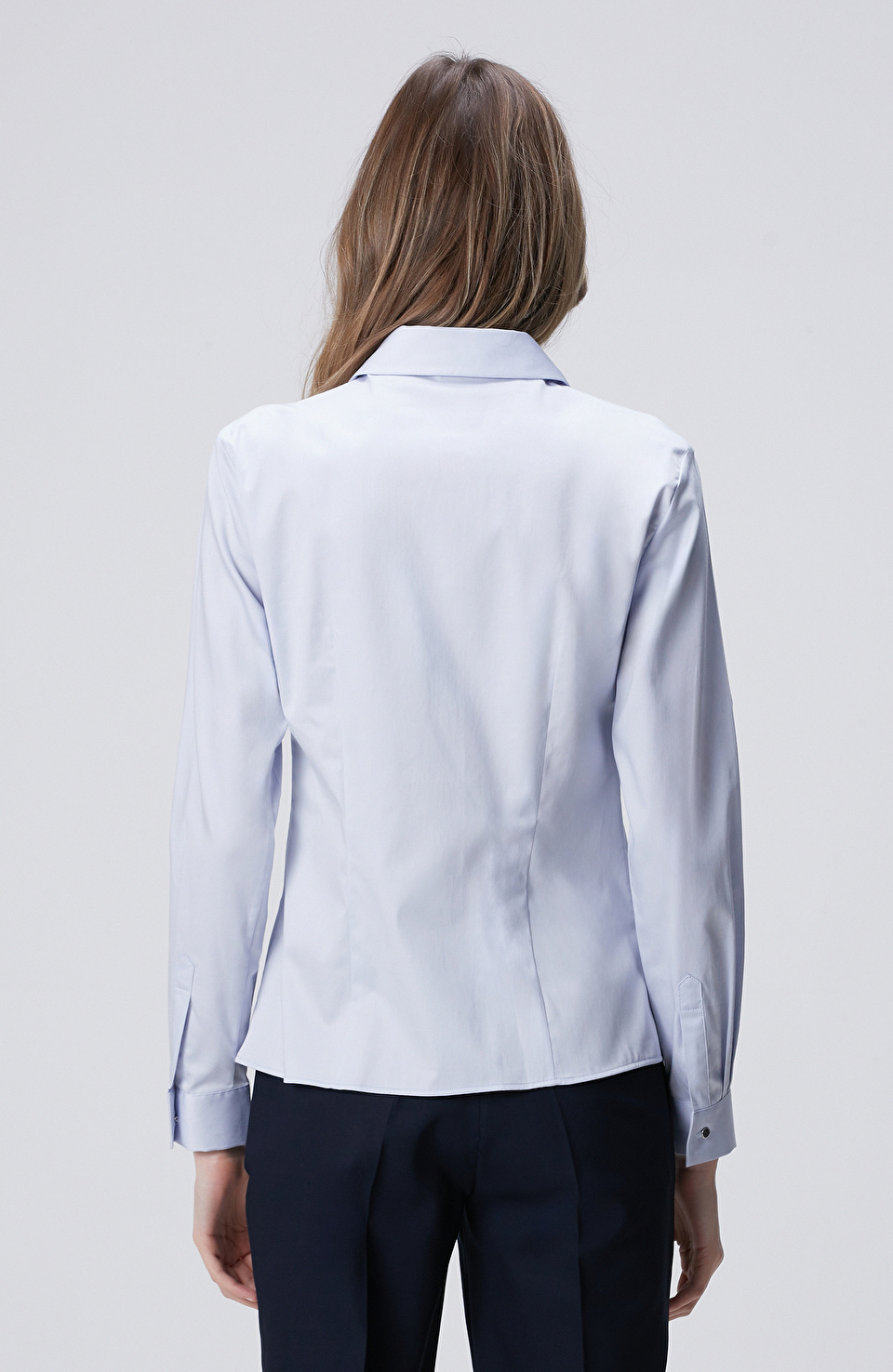 Açık Mavi Pamuk Saten Basic Gömlek