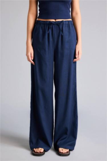 Wıde Leg Beli Lastikli Keten Karışımlı Pantolon