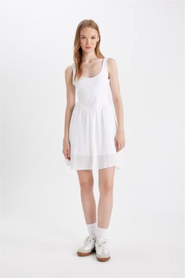 Coool Yuvarlak Yaka Beyaz Kalın Askılı Mini Elbise