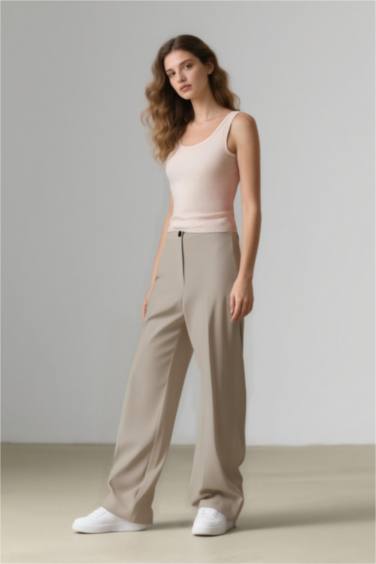 Standart Boy Kumaş Palazzo Pantolon Wide Leg Geniş Bol Paça Basic Düz Yüksek Bel