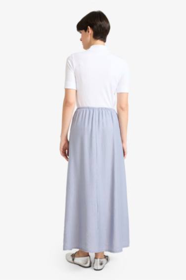 Relax Fit Beli Lastikli Krinkıl Kumaş Bilek Midi Etek