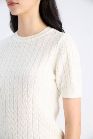 Regular Fit Bisiklet Yaka Basic Düz Triko Kısa Kollu Kazak