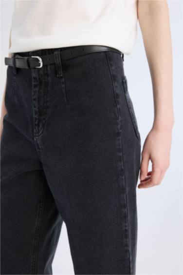 Culotte Yüksek Bel Rahat Kalıp Bilek Boy İspanyol Paça Kemerli Jean Yıkamalı Pantolon