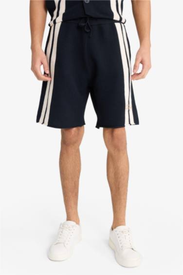 Standart Fit Beli Bağcıklı Renk Bloklu Triko Şort