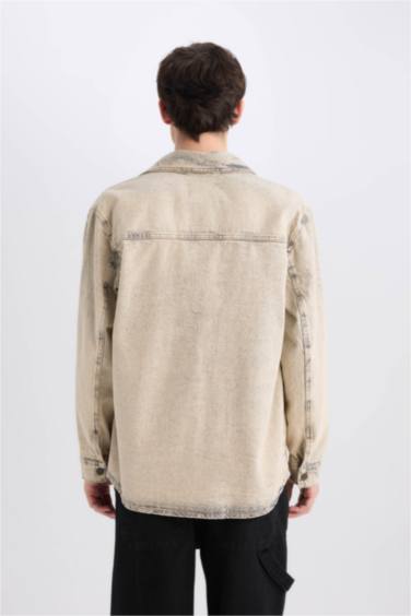 %100 Pamuk Relax Fit Cepli Uzun Kollu Jean Gömlek