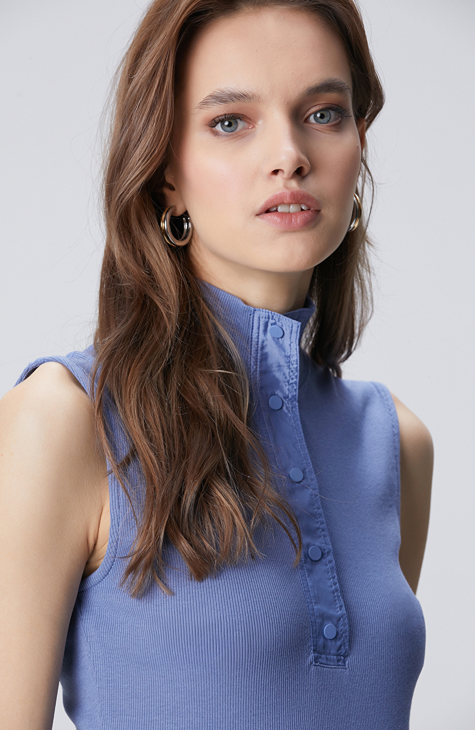 Mavi Dokuma Garni Detaylı Modal Mix T-shirt