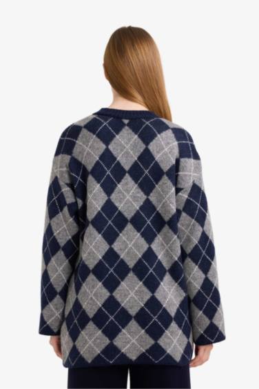 Regular Fit Bisiklet Yaka Baklava Desenli Triko Kazak Tunik