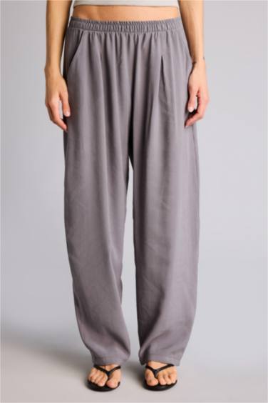 Regular Fıt Yüksek Bel Keten Görünümlü Pantolon