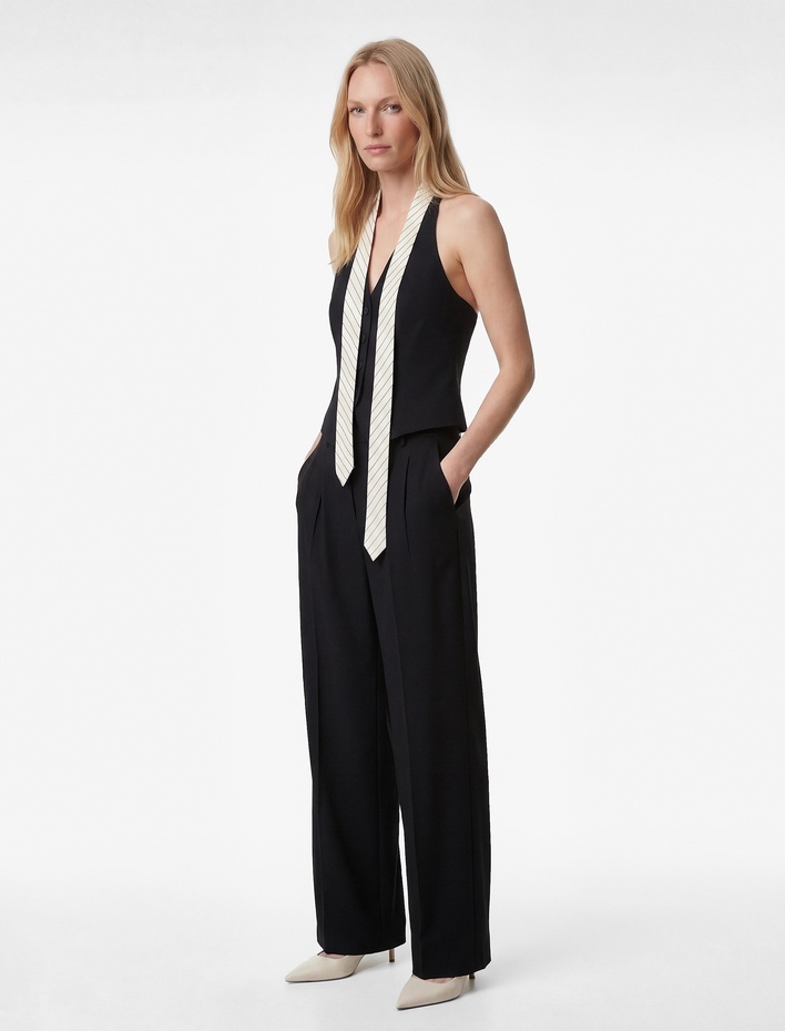 Koton pileli palazzo pantolon, temiz hatlar ve minimal detaylarla dikkat çeken bir parçadır. Uzun govdeli tipler için idealdir çünkü vücut çizgilerini dengeler ve uzunluğu vücut tipine uygun şekilde vurgular. Beyaz tisörtle ve yüksek bel jeans ile kombinleme yaparak rahat ama şık bir günlük kıyafet oluşturabilirsin. Aynı zamanda siyah bluz ve düz kesimli kabanla ofis-sonrası buluşmalarda da harika görünür. Renk olarak siyah, soyut ve etkileyici bir sadelik sunarken, krem rengi ise daha ılık bir havaya sahip olmanı sağlar. Siyah deri kemer ve beyaz sneaker ile tamamlayarak hem modern hem de dengeli bir görünüm elde edebilirsin. Düşük bakım gerektiren bu pantolon, katlanmadan asılmalı ve iç katman olarak da kullanılabilir. Her mevsimin vazgeçilmezlerinden biri olacak bu parça, sadece giyilecek değil, düşünülecek bir parça.