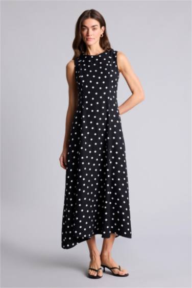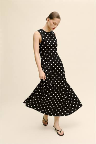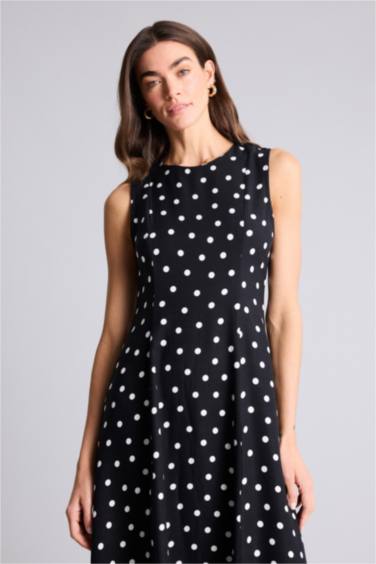 Bisiklet Yaka Puantiye Poplin Kısa Kollu Midi Elbise