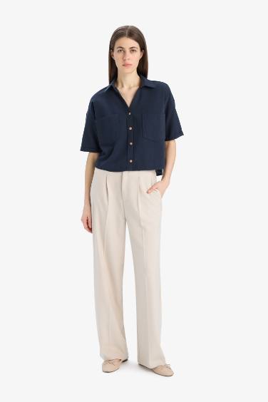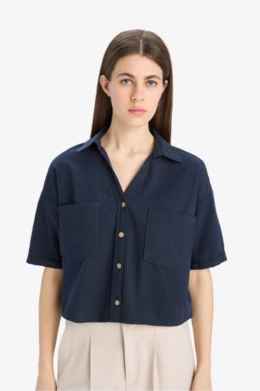 Boxy Fit Basic Düz Kısa Kollu Gömlek