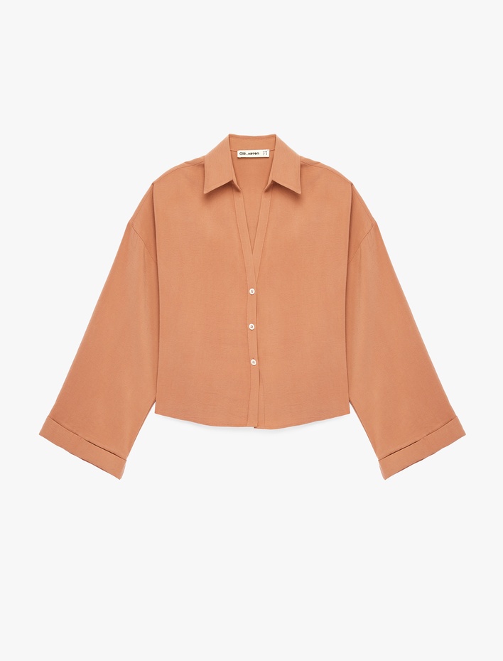 Rahat Kalıp Uzun Kollu Klasik Yaka Düğmeli Viskon Gömlek