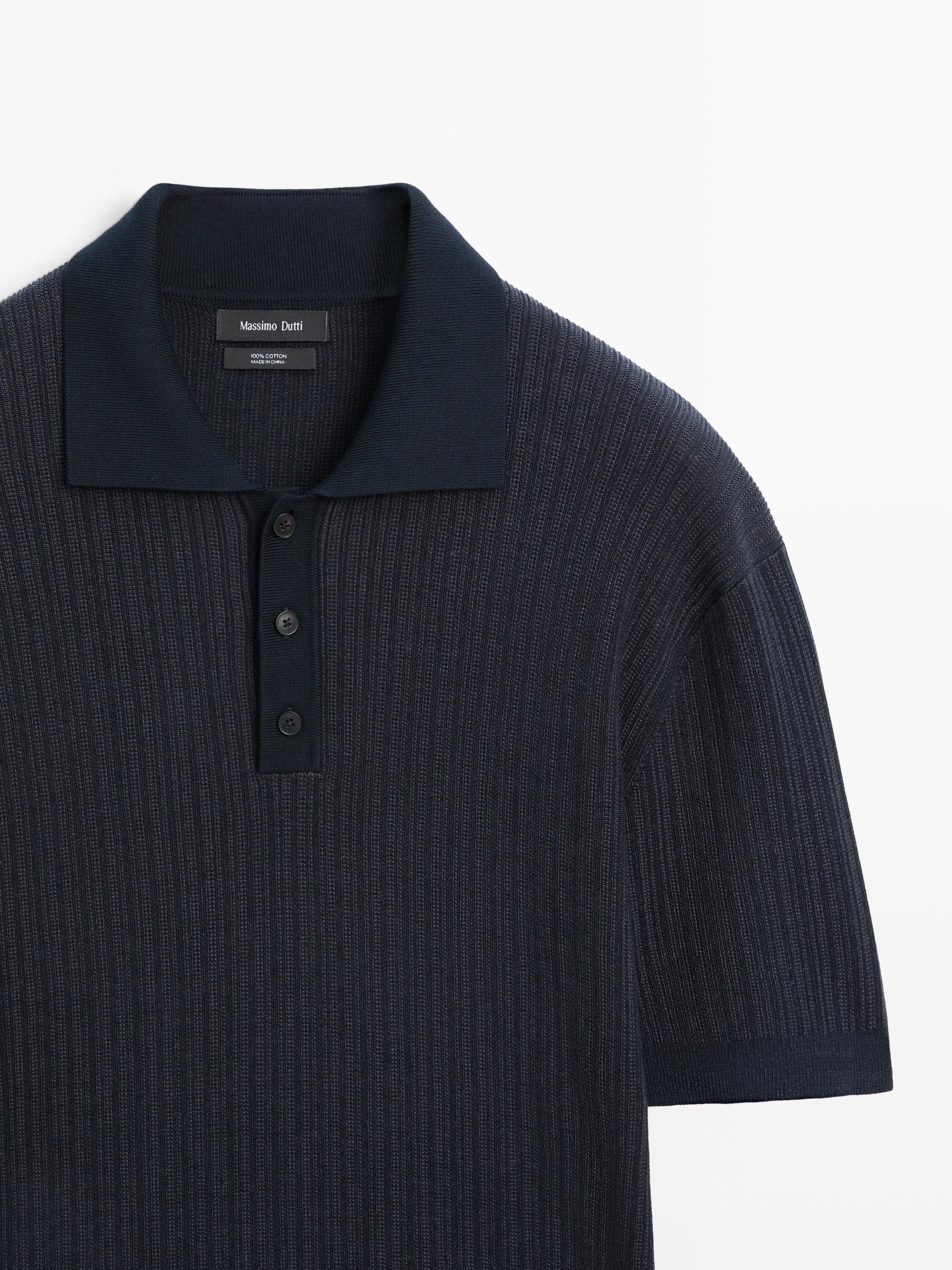 Kısa kollu dokulu triko polo yaka t-shirt