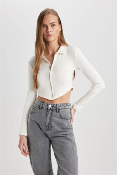 Fitted Polo Yaka Fitilli Kaşkorse Crop Fermuarlı Hırka — ... | Oneri