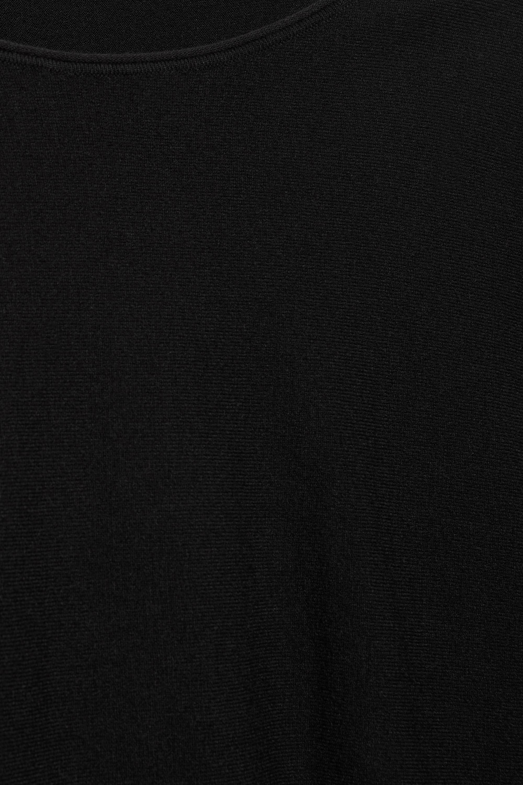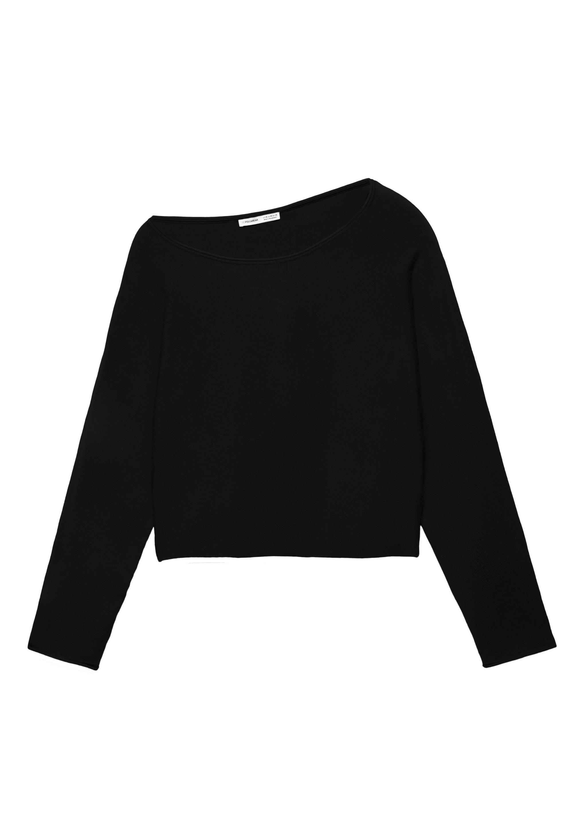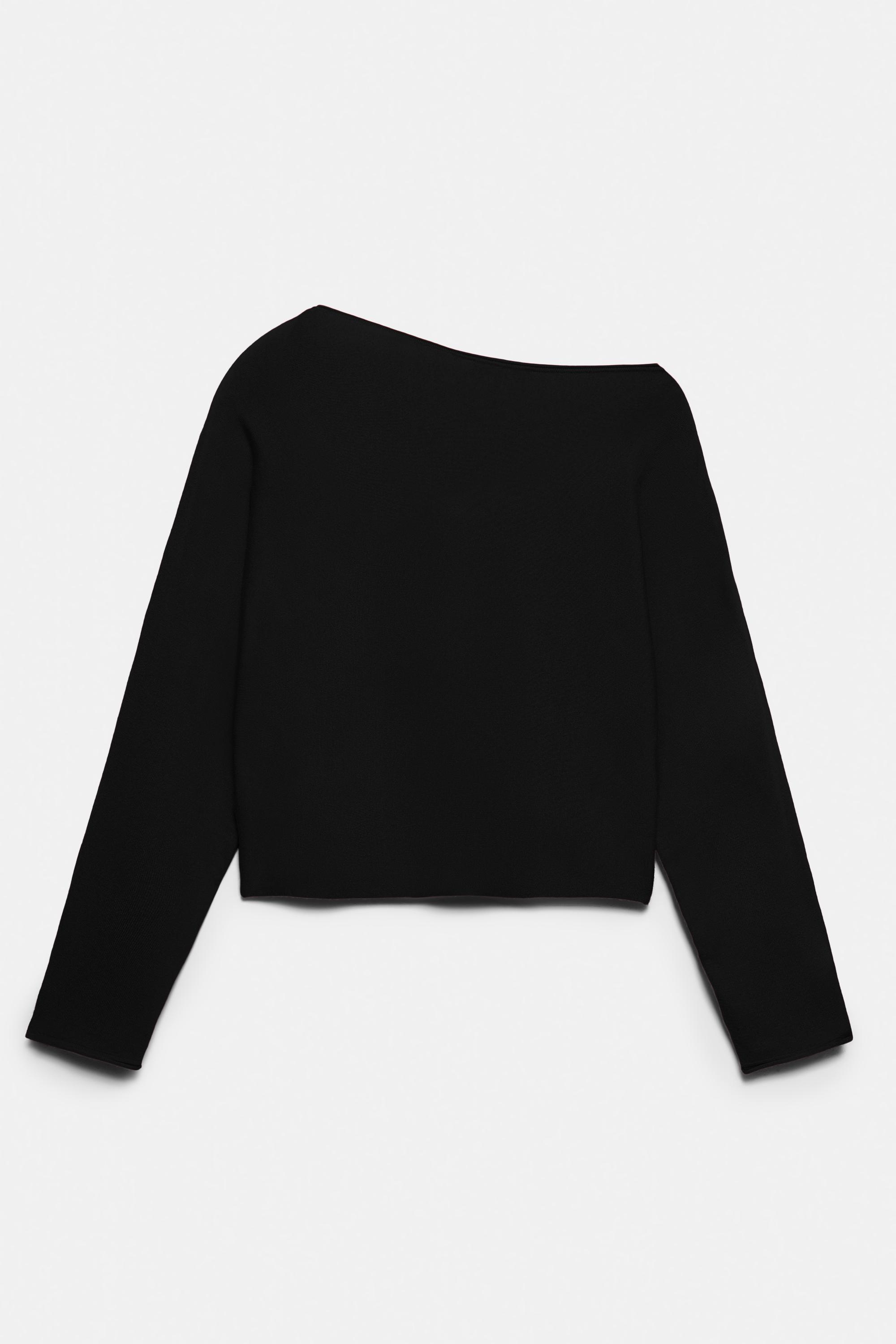Asimetrik yakalı ve fitilli uzun kollu kazak.