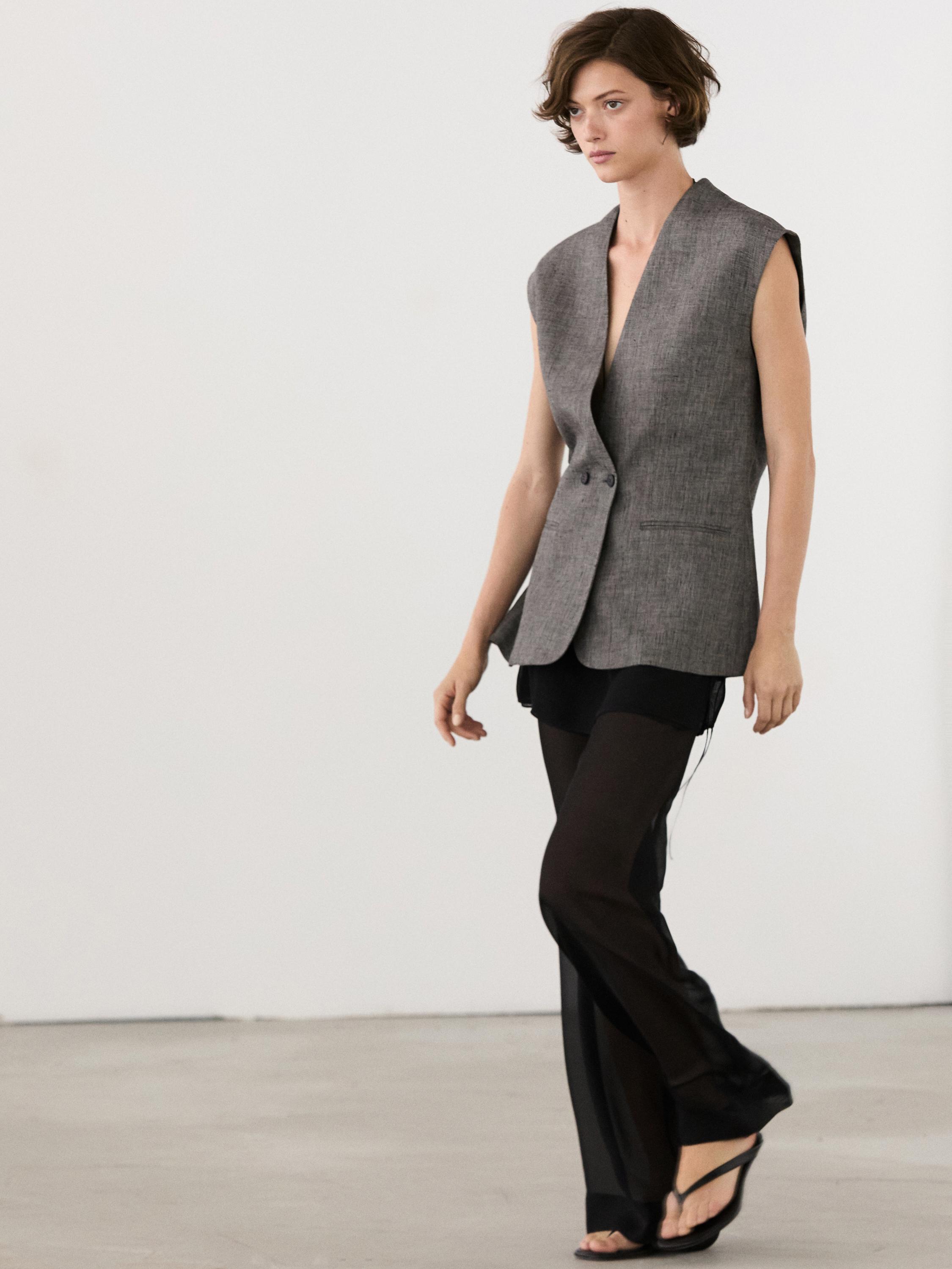 Omuzları vurgulu keten yelek
