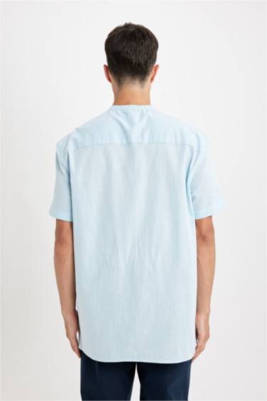 %100 Pamuk Regular Fit Dik Yaka Pamuklu Kısa Kollu Gömlek