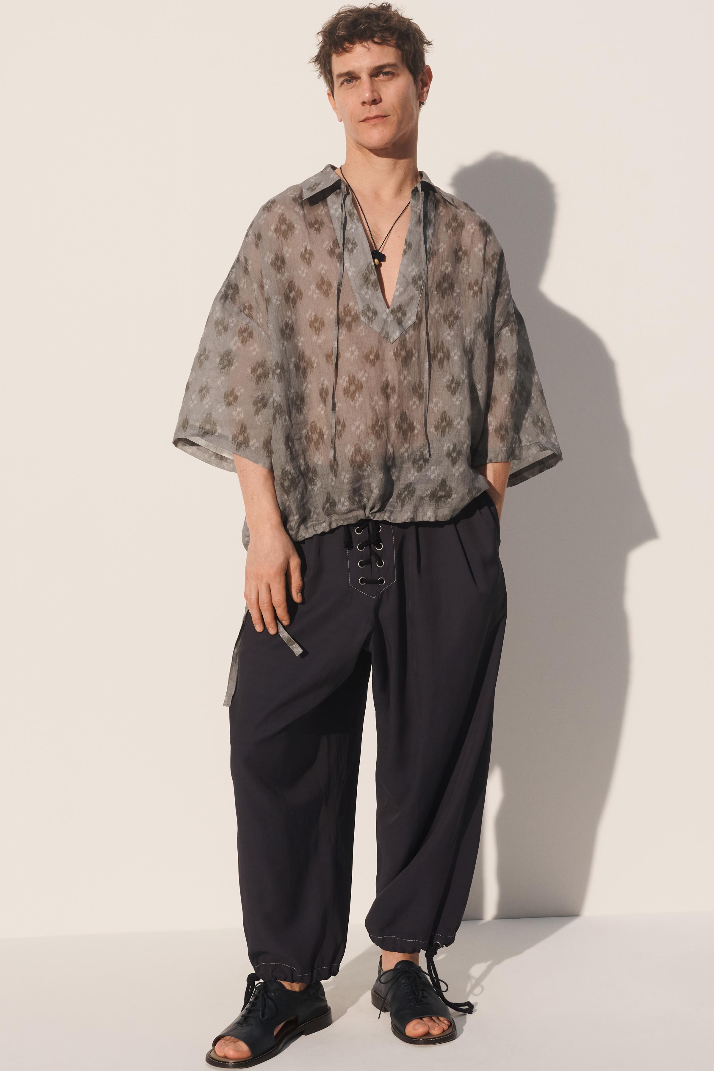 Zara'nın bağcıklı dökümlü pantolonu, temiz hatlar ve rahat bir kesimle gündelik yaşamın en sade anlarını süsleyebiliyor. Düşük omuzlu bluzlarla veya basit bir t-shirt ile kombinlenebilecek bu model, minimalist tarzda klasik bir dokunuş sunuyor. Uzun gövdeli tipler için idealdir; omuz hizasına kadar uzayan kollu bir montla dengeleyebilirsiniz. Yaz aylarında açık ayakkabılarla, sonbaharda ise botla uyumlu olur. Siyah deri kemer ve beyaz sneaker ile tamamlayarak şık bir günlük görünüm elde edebilirsiniz. Kuru hava ve güneşli günlerde giyilebilir, nemli ortamlarda da sorunsuz kalır. Katlanmadan asılı tutulması, kırışıklıkları önler ve kullanım ömrünü uzatır. İç katman olarak da kullanılabilir, farklı ürünlere uyum sağlar.