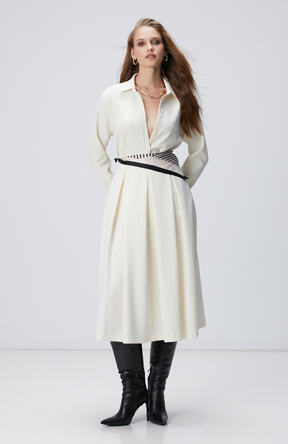 -%35Kırık Beyaz Pileli Midi Boy Etek