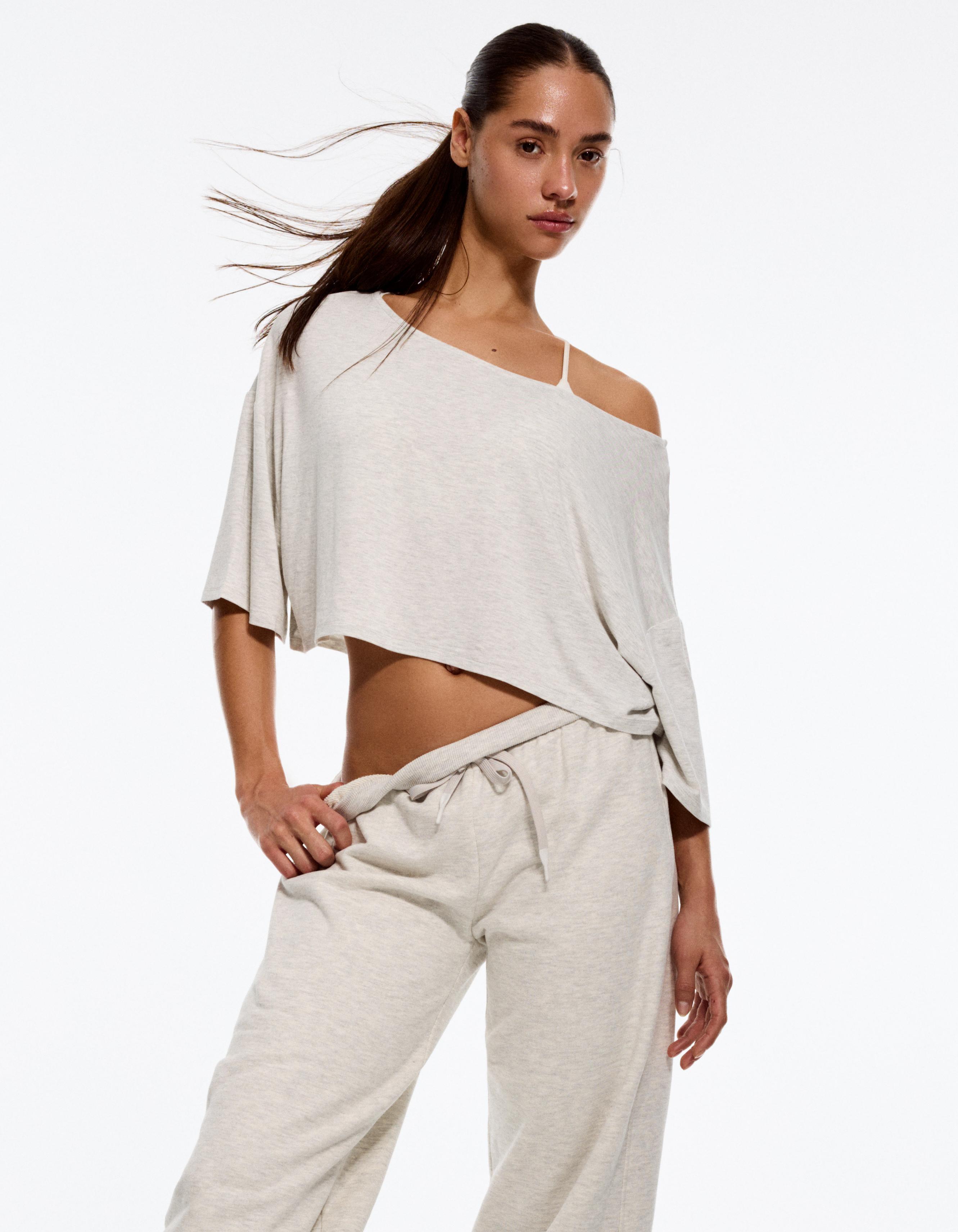 Asimetrik kısa kollu tişört