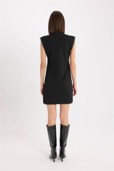 Fitted Yarım Balıkçı Yaka Basic Düz Kolsuz Mini Elbise