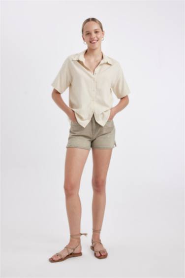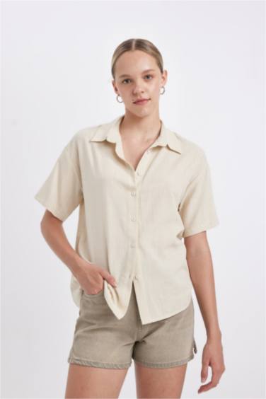 Oversize Geniş Kalıp Keten Görünümlü Kısa Kollu Gömlek