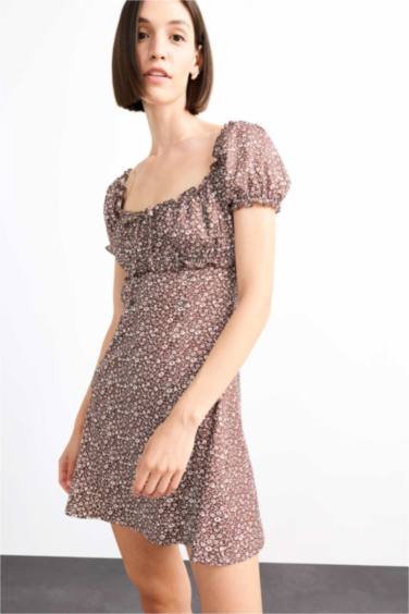A Kesim Çiçekli Bürümcük Açık Omuzlu Mini Elbise — defacto | Oneri