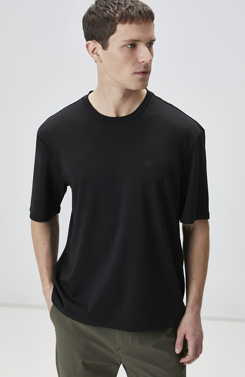 Comfort Fit Siyah Bisiklet Yaka T-shirt