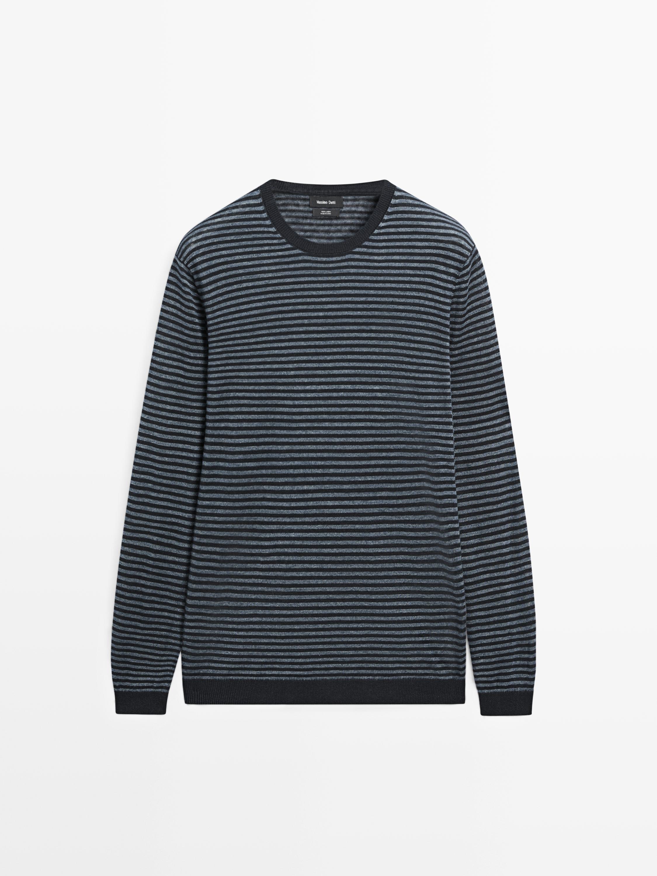 Keten detaylı çizgili triko, temiz ve dengeli bir estetikle dikkat çeker. Uzun govdeli tipler icin idealdir; cizgiler vucudun uzunlugunu dengeleyerek daha klasik bir gozukme saglar. Gunesli yaz gunduzlerinde beyaz tisortle ve yuksek bel jean ile kombinle, hafif bir casual gozukme yaratir. Sonbahar aksam yuruyuslerinde ise siyah deri kemer ve beyaz sneaker ile tamamlayarak smart casual bir tarz olusturabilirsin. Koyu gri rengi, notr tonlara uygun olarak ofis-sonrasi bulusmalarda da rahatca giyilebilir. Keten dokusu nedeniyle nem tutmaz ve hafif bir dokusu vardir. Katlanmadan asmali, iki katmanli giysilerde de iyi durur.