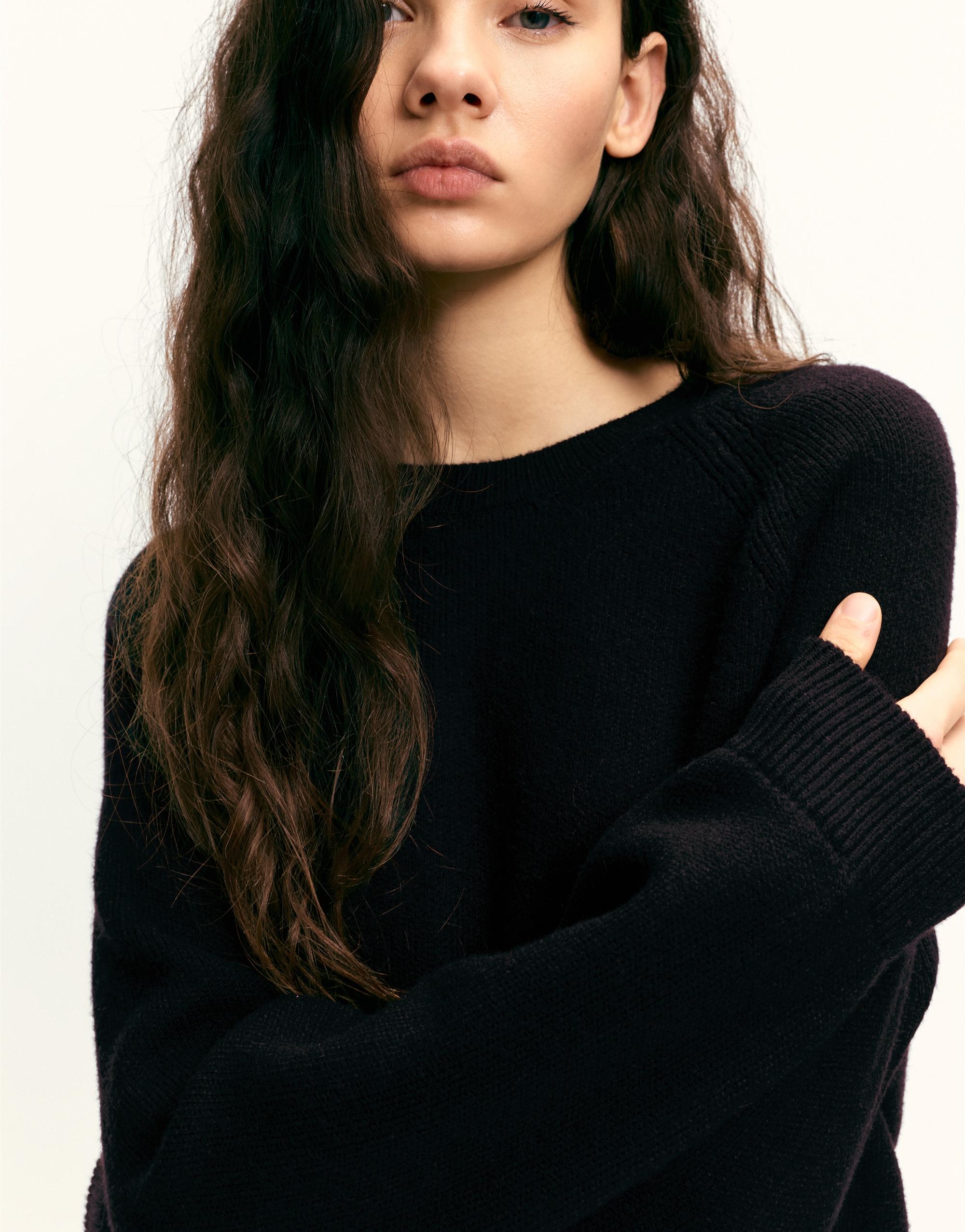 Hacimli, oversize, bisiklet yaka, uzun kollu kazak.