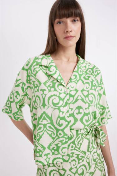 Regular Fit Desenli Pijama Yaka Kısa Kollu Gömlek