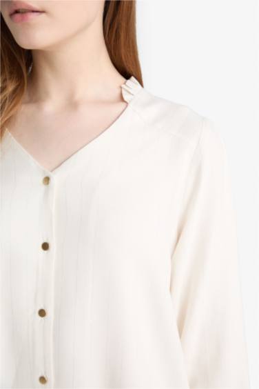 Regular Fıt Bisiklet Yaka Simli Kumaş Uzun Kollu Gömlek