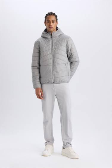 Su İtici Regular Fit Kapüşonlu Fermuarlı Mevsimlik Şişme Mont