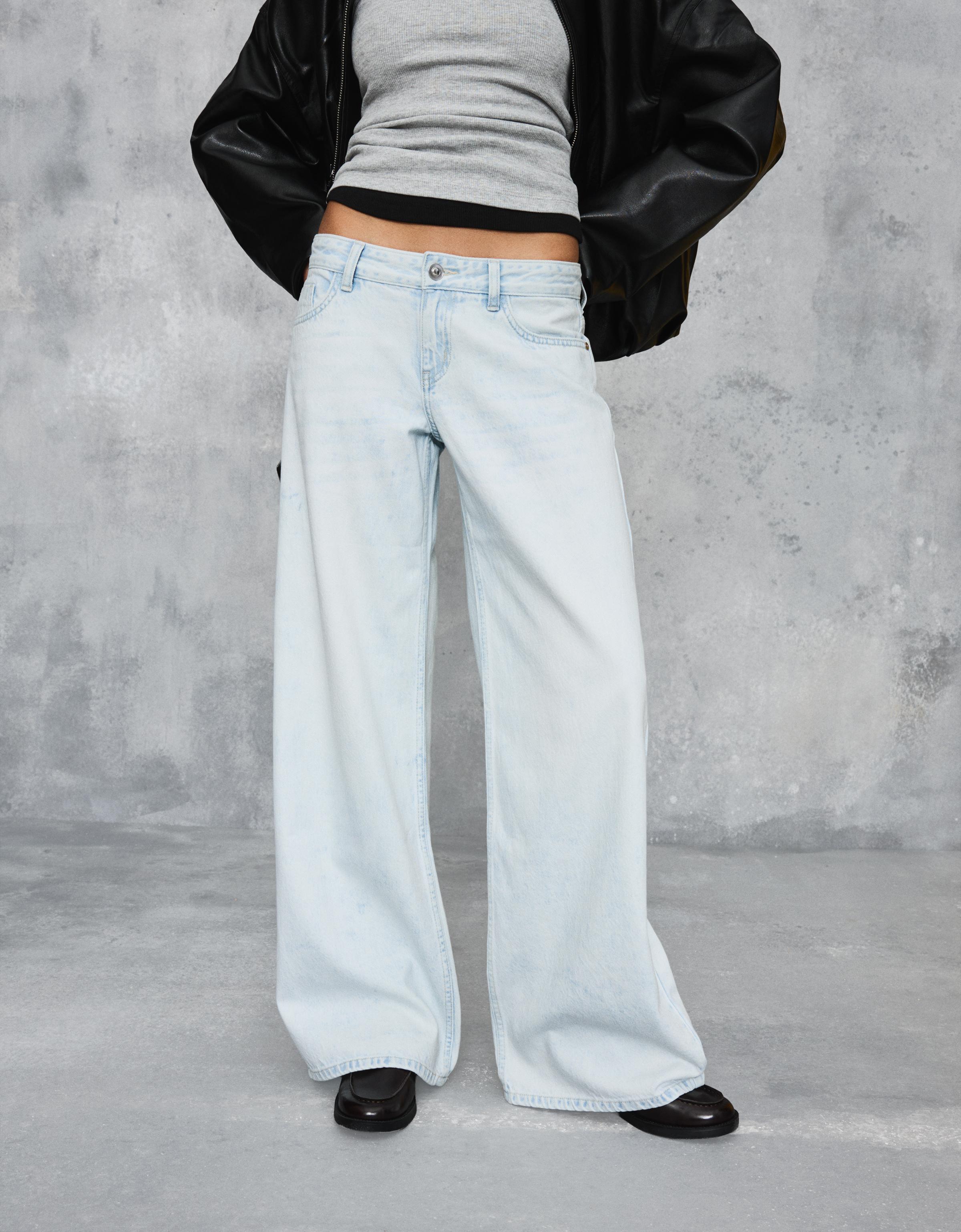 Geniş paça düşük bel jean