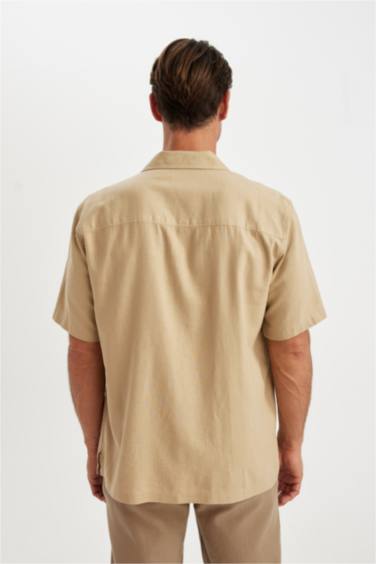 Relax Fit Yazlık Polo Yaka Keten Karışımlı Kısa Kollu Gömlek