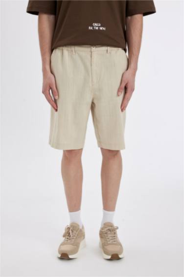 -%20%100 Pamuk Regular Fit Yazlık Keten Bermuda Şort