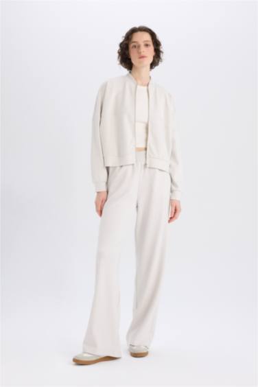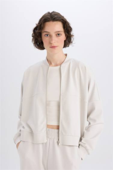 Relax Fit Hakim Yaka Basic Düz Fermuarlı Soft Touch Sweatshirt