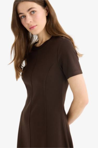-%10Bisiklet Yaka Basic Düz Kısa Kollu Mini Elbise