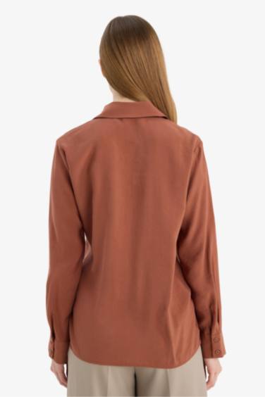 Relax Fıt Gömlek Yaka Modal Uzun Kollu Gömlek
