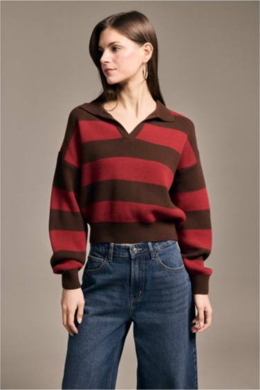 Oversıze Çizgili Kazak