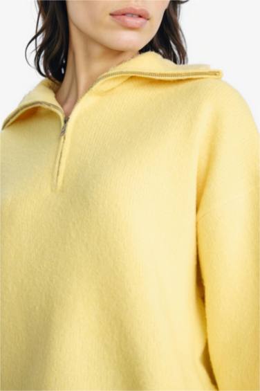 Oversize Geniş Kalıp Yarım Fermuarlı Dik Yaka Triko Kazak