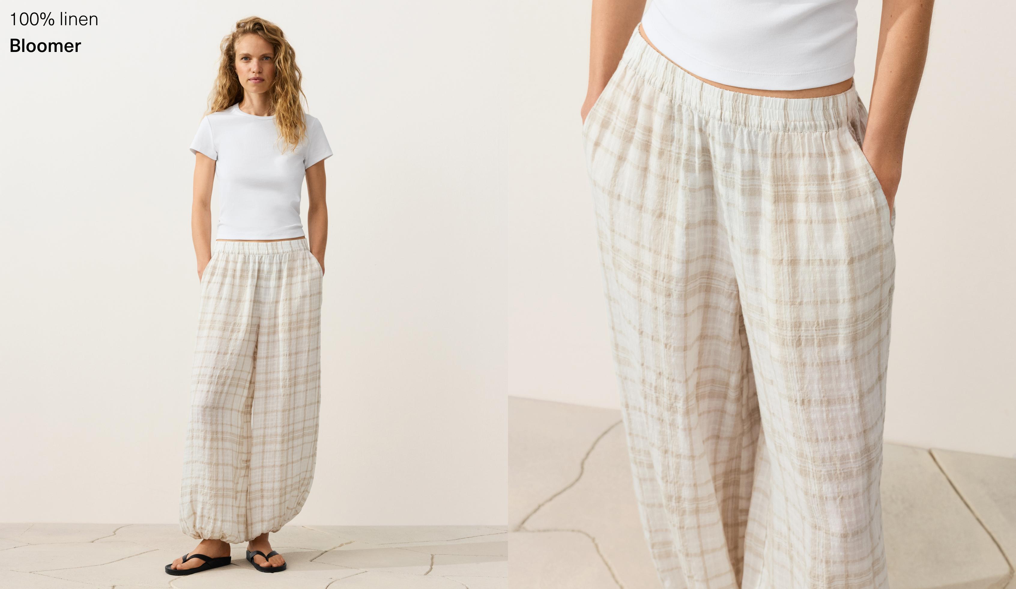 Bu keten ve liyosel karışımı bloomer pantolon, hafif esnekliği ve doğal dokusuyla günlük yaşamın her anına uygun bir parçaya sahip. Uzun govdeli tipler icin idealdir; bol kesimi vucudunuzu rahatlatirken dengeli bir gozuk olusturur. Klasik beyaz tisortle ve yuksek bel jean ile kombinleme yaparak sade ama stil yaratan bir gorsel elde edebilirsin. Aynı zamanda off-white renkli bir bluzla kareli bir canta ile bohemian bir havaya bürünebilirsin. Siyah deri kemer ve beyaz sneaker ile tamamlayarak hem pratik hem de estetik bir look olusturabilirsin. Yıkandıktan sonra katlanmadan asmali, uzun süre esnemez ve kolayca bakım saglar. Bahar ve yaz aylarında ofis-sonrasi bulusmalarda ya da tatil günlerinde oldukça uygun bir secimdir.