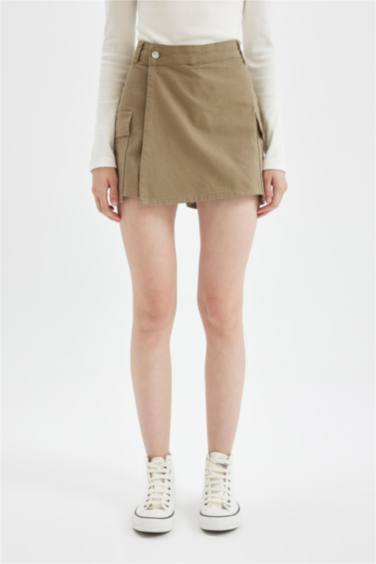 Regular Fit Normal Bel Kargo Cepli Gabardin Şort Etek